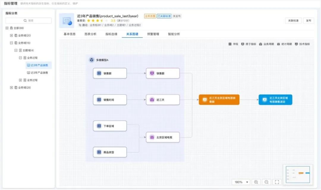 平臺將指標拆分成更細粒度的原子指標、統(tǒng)計周期、業(yè)務(wù)限定去管理,提高指標的開發(fā)速度,提升指標的復用性、統(tǒng)一指標的業(yè)務(wù)和技術(shù)口徑。如果指標異常,還能實現(xiàn)指標溯源,同時提供了從指標標準到定義到管理的完整能力。