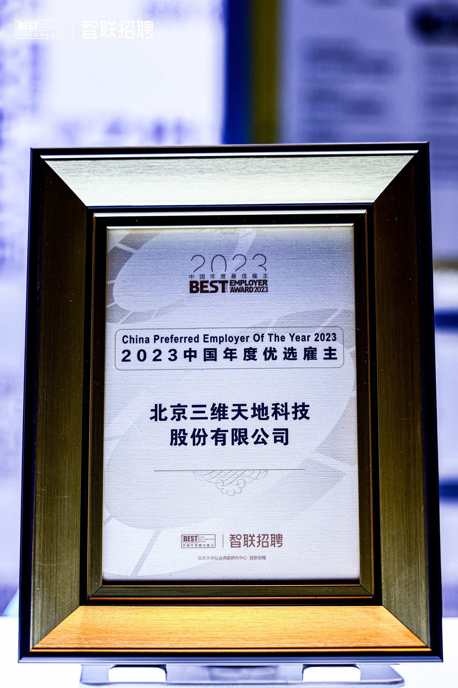 喜訊 | 三維天地獲評“2023中國年度優(yōu)選雇主”稱號