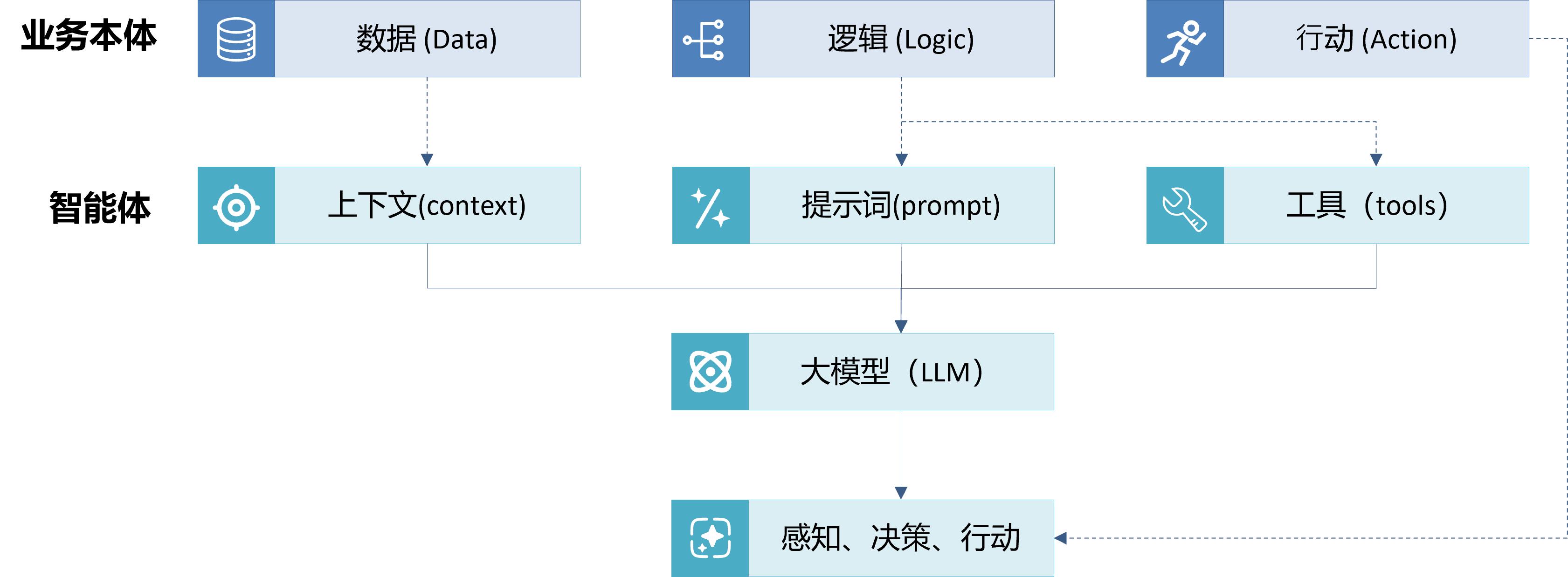 業(yè)務(wù)本體圍繞數(shù)據(jù)、邏輯和行動(dòng)三個(gè)核心要素進(jìn)行構(gòu)建: