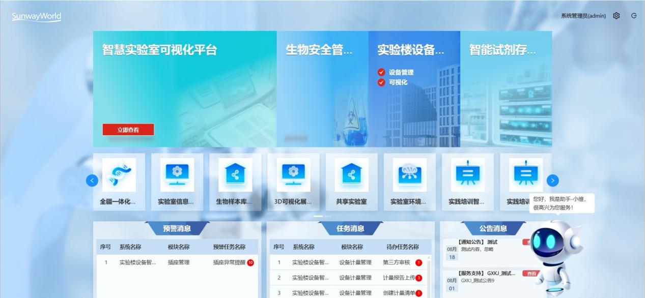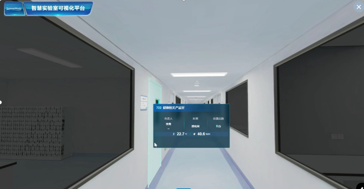 - 孿生實(shí)驗(yàn)室交互管理:對(duì)實(shí)驗(yàn)室物理環(huán)境進(jìn)行虛擬仿真,突破信息孤島,將分散的各獨(dú)立管理系統(tǒng)(監(jiān)控軟件、門禁控制臺(tái)、設(shè)備管理平臺(tái)等)無(wú)縫集成于統(tǒng)一的3D虛擬環(huán)境。管理者可通過(guò)數(shù)字分身進(jìn)行第一視角漫游,在虛擬實(shí)驗(yàn)室中自由行走、觀察細(xì)節(jié)、執(zhí)行交互指令,大幅提升管理效率與操作體驗(yàn)。