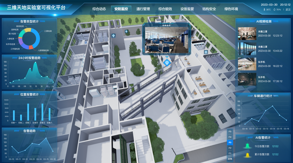 - 智慧安防感知監(jiān)管:智慧孿生平臺(tái)直接獲取門禁出入記錄及視頻監(jiān)控信息。融合計(jì)算機(jī)視覺(jué)與前沿AI算法,創(chuàng)新采用“數(shù)字孿生+實(shí)時(shí)視頻”雙通道監(jiān)控模式。系統(tǒng)智能識(shí)別實(shí)驗(yàn)室內(nèi)人員操作行為,對(duì)違規(guī)動(dòng)作(如不規(guī)范操作、危險(xiǎn)行為)進(jìn)行即時(shí)分析與預(yù)警,構(gòu)筑智能化主動(dòng)安全防護(hù)體系。